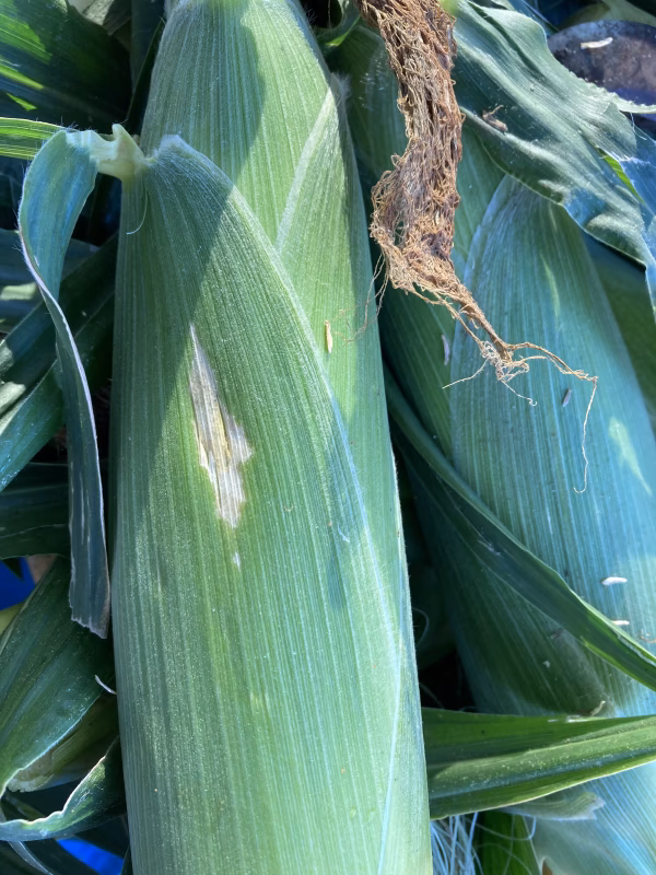 - 8/1に雹の被害があり、雹の当たったところがあるとうもろこしが含まれます。 房の中に水が入って傷んだものが稀にあります。 ひどい傷みが多数の場合はご連絡ください。