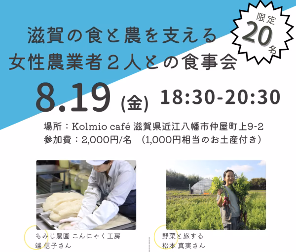 本商品は、ポケットマルシェと滋賀県が連携して実施するイベント【滋賀の食と農を支える女性農業者2人との食事会】の参加チケットです