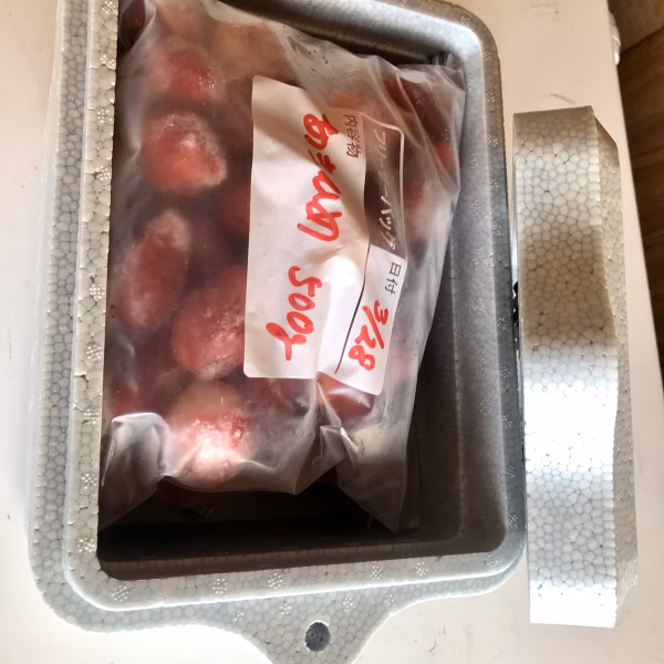 今シーズンの石垣いちごをヘタを取って冷凍にしたものです。(今シーズンはこの2点で最後です)