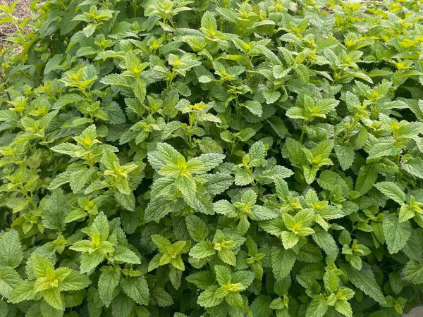 生のレモンバームの葉を茎付きで15センチ前後にカットして