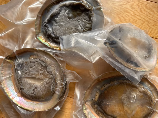 アワビは生の状態で計量しています、冷凍の際に水が切れますと目減りますのでご了承ください