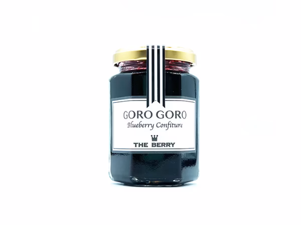 1瓶に採れたてのブルーベリー約250g分(標準的な大きさの粒100粒以上)を濃縮し、ゴロゴロ食感のコンフィチュールに仕上げました。