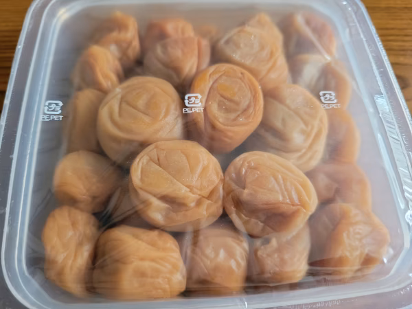 みっちゃん家で漬けた2Lサイズの中粒梅干しを 少し塩抜きし、はちみつ入りの調味料に漬けて 味付けしています。