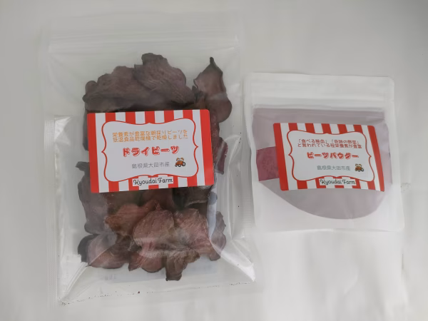 ☆Kyoudai Farmのドライビーツ(新商品)とビーツパウダー☆ 農薬化学肥料不使用で栽培したビーツを収穫して洗浄後すぐにスライス・乾燥しております。 天日干しではなく食品乾燥機で低温乾燥する事で栄養素を失わないだけではなく変色やカビの発生の心配がございません。 最大の特徴は粉砕機にあります。0.3mmメッシュスクリーンで粉砕してパウダーにしている為なめらかで甘みがあり摂取しやすくなっています。(ビーツパウダー) 農薬化学肥料・添加物・保存料不使用でノンフライですので安心してお召し上がり頂けます。 収穫時期により色や食味が多少変わる事がございます。品質には全く問題ございません。 賞味期限は製造日から1年間になっております。写真の賞味期限又は新しい賞味期限の商品を発送させて頂きます。 ★お召し上がり方(ビーツパウダー) 粉末タイプなので毎朝のスムージーやお好みのお飲み物にお手軽に加えて頂けます。パンケーキやヨーグルトなどに加えて天然の着色料としても。 ★お召し上がり方(ドライビーツ) 水で戻してサラダやボルシチなどのお料理に スープなどの汁物は戻さずにそのままお使い頂けます。   軽く揚げてチップスに 生ビーツがない時期でもお手軽にお使い頂けます。  ★農薬化学肥料不使用で露地栽培したビーツ使用の赤色ビーツパウダー70gとドライビーツ30gをクリックポストにて発送します。 また、ポストに入らない場合は手渡しになります。
