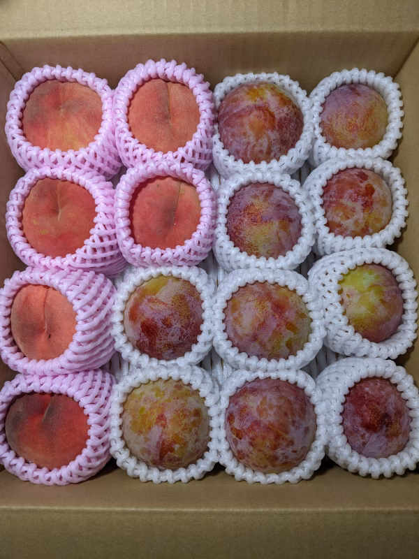 桃はあかつき小サイズ6個入りです。 すももは貴陽10個入です。 硬いものをお届けしますので、追熟してお召し上がり下さい。