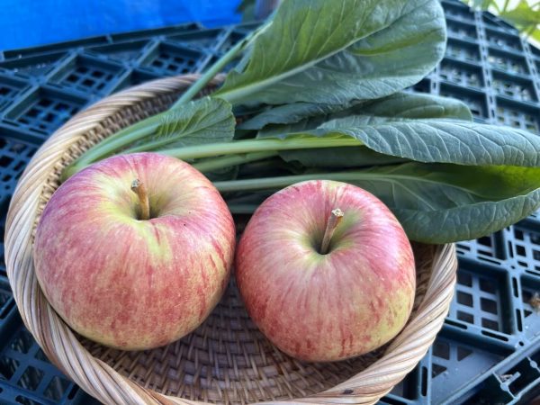 グリーンスムージーに利用していただくことをイメージした小松菜とリンゴのセットです。約3回分を想定しています。