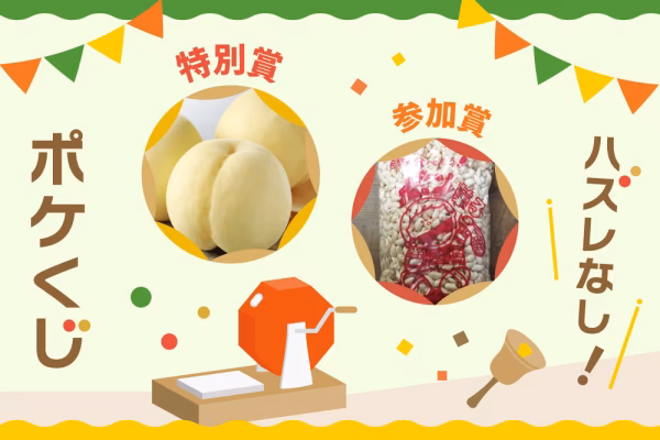 八月第2弾は、特別賞として100人に1人、約6000円相当の「岡山県産 白桃」がもらえます♪参加賞は、昔懐かしい味で好評だった「ポン菓子」がもらえます。