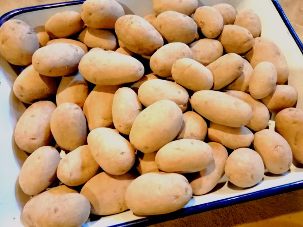 群馬県で一番小さな山間地の村  上野村のお宝 ”ジャガイモ” 肥料を与えず、山の畑の滋養で育ったジャガイモは、 どうしてもサイズが小さいお芋が多くなってしまします。 「皮むきしずらい!」 ちょっとまって、農薬を一切使用しない当農園のジャガイモは皮ごと食べて、もちろん安全。皮の薄いジャガイモはそれほど舌触りが気になりません。むしろ野菜って皮に栄養が豊富ですから、皮つきがおすすめ。 そして、 みそ炒め、丸揚げなどの料理に使いやすい。 実は私たちが出店する東京都内のマルシェイベントでは圧倒的にこの小粒のお芋が選ばれています。 どんなジャガイモなのかは以下をチェック! ----------------------------------------------------------------------------- 山間地でとれたジャガイモを食べたことがありますか? こちら群馬県上野村は標高約500~2000mにある、険しい山々に囲まれた、人口わずか1100人の村です。村の面積の97%が森林(山地)で、清流が削り出した谷沿いのわずかな広さの耕地に石をつみ、急斜面を耕し、人の営みを続けてきた場所です。  ジャガイモは、そんな山間耕地のプライドです。昔から水田を造れなかった急傾斜の耕地では、代かきなどの水田作業ではなくジャガイモを植えるための畑うない(耕運)の鍬の音が、里に春の訪れを告げます。今でも畑を持つほとんどの家庭が、ジャガイモをつくっています。ジャガイモだけはつくっていると言う人も多くいます。  理由はただ、山の畑で作るジャガイモが抜群にうまいから。そして、それをたくさん作って都会にすむ子供や孫に贈るため。  「低地平野部にすむ親戚の家にジャガイモを贈ったら、もうその親戚の家ではジャガイモを作るのをやめて、来年も送ってもらうのを待つことにした。」こんなエピソードをよく耳にするほど味の違いが歴然。  そして村人はみな「○海道産より断然美味しい」と口をそろえます。  その理由を村人は「山の畑の土質」、「昼夜の寒暖差」、「朝に山霞(霧)が巻くような山の畑は何を作っても味が違う」と様々に口にします。  人口よりも野性動物の生息数の多いような山と隣り合わせで、獣避けの網や柵を巡らし、農業機械を入れられない斜面での作業の労を厭わず、村人はジャガイモを作り続けている理由があります。  そんな村の中で、当農場の栽培法で特筆するべき点は一切の農薬を使用していない点と、肥料を施していない点です。土の力でゆっくりと育ったお芋は、小ぶりながらも味わいがしっかりしています。肥料によって大きく育てられたお芋は貯蔵製が悪くなる、腐りやすいと言われています。  しかし、味や利便性も重要ですが、この利根川水系「神流川」の源流域で生きている以上、水を守るために農薬や化学肥料を使い続けることを見直さないと感じているので、この栽培法方なのです。  収穫は回転式の堀取り機を使わず、鋤でお芋の固まりごと持ち上げた後に、手で掘り出しましたのでキズも少ないです。  山の中だからこそ、価値がある。yotaccoの山プレミアムジャガイモ。   安心安全な、ジャガイモ。一番おすすめの食べ方は蒸かして、塩、バター、みそ、または何も着けずに、その他お好きなものをつけて、皮ごとそのままいってください。   崩れにくいメークインは汁系の料理に、粉質のキタアカリ、ダンシャクはポテサラなどに向いていると言われています。
