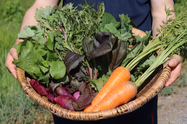 - 暑い日が続いておりますので、野菜が到着しましたら冷蔵庫に保管していただき、食前に水につけるとみずみずしさが戻ります。