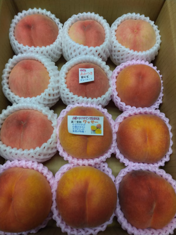 ワッサー🍑は、長野県の中村渡(わたる)さんの園地で、白根白桃と水野ネクタリンの掛け合わせによって産まれました。