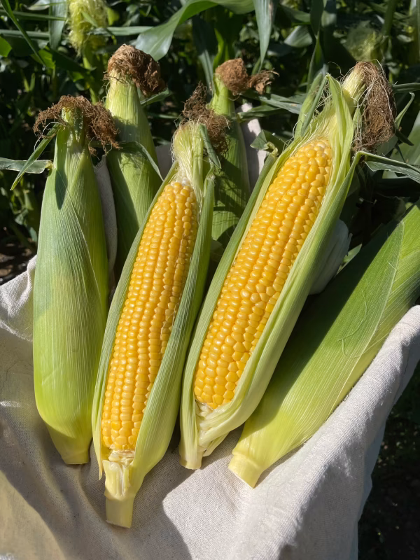 産地・・・長野県の中心部、諏訪湖のほとり岡谷市に位置し、避暑地としてだけでなく、とうもろこしの産地としても有名な樋沢(ひざわ)地区。標高1000mの高台にあり、昼夜の寒暖差が10℃以上にも及ぶことで、糖度20度前後のトウモロコシが育ちます。 サニーショコラライラ・・・上品な甘さとさわやかな香りが特徴。粒色は鮮黄色、粒皮は非常に柔らかく、みずみずしいため、食感がよく美味しい品種。
