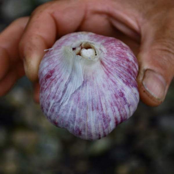 最上町の伝承野菜の「赤ニンニク」です。