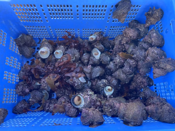 一個一個丁寧に潜って取ったサザエで、海藻を与えて、身はプリップリで甘くて美味しいサザエです。