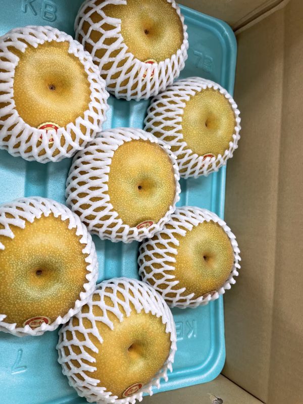 ※豊水にはみつ症という症状が出る果実があります。表面的にはわかりませんが、皮を剥くとゼリー状になっています。これは糖分が凝縮したもので、傷んでいるわけではありません。食べられますし、甘いですが日持ちはしません。