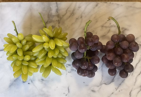 ▼ゴールドフィンガーは大変甘いぶどうです。糖度18度を目処に収穫します。こちらは皮ごとたべられます。ただゴールドフィンガーは大変傷みやすい品種で裂果の起こりやすい品種であります。細心の注意で傷んだ粒は撤去しますが、見落としがある場合もあります。また運搬時の振動などでも脱粒の可能性はあります。どうかその辺を了承の上購入してください。