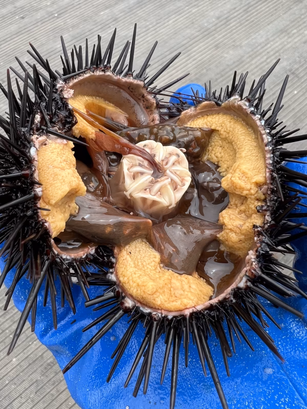 獲れたてのキタムラサキウニを殻付きでお届けします。