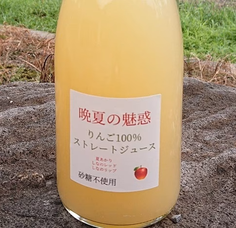 信州安曇野松澤農園の夏りんご3種(夏あかり、しなのリップ、しなのレッド)を収穫後すぐに絞った100%ストレートジュースです。