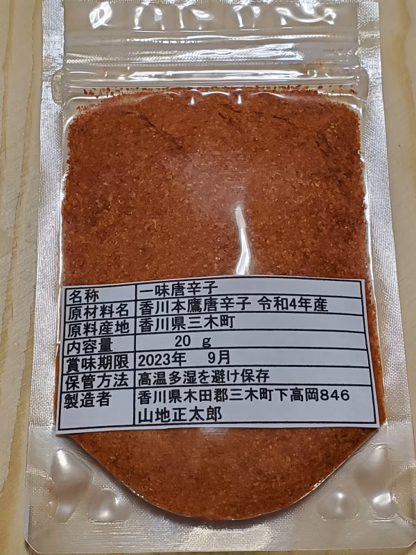 の畑で育った自家採取5年目の香川本鷹を乾燥して一味にしました。