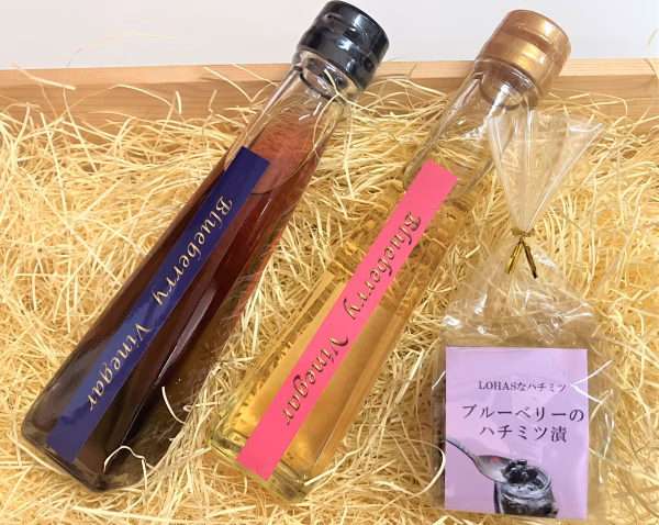 • ブルーベリーで作った2色のビネガーとハチミツ漬のセット