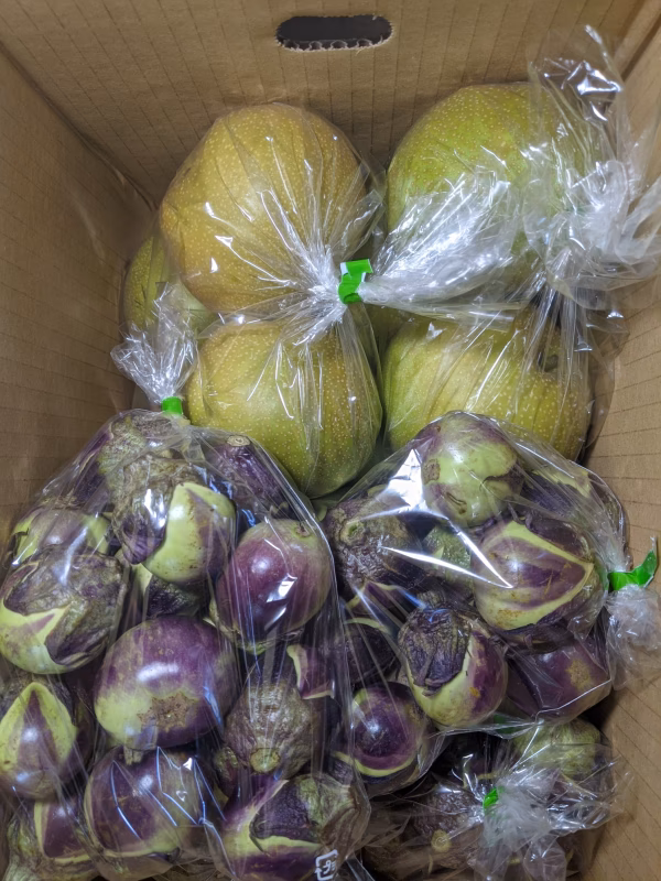 幸水8玉2.9kgと薄皮丸ナス2kgです。