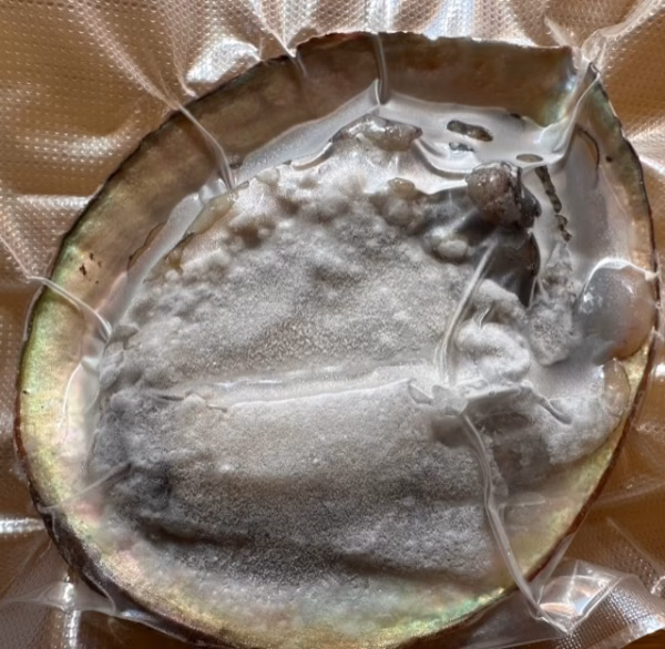 アワビは生の状態で計量しています、冷凍の際に水が切れますと目減りますのでご了承ください