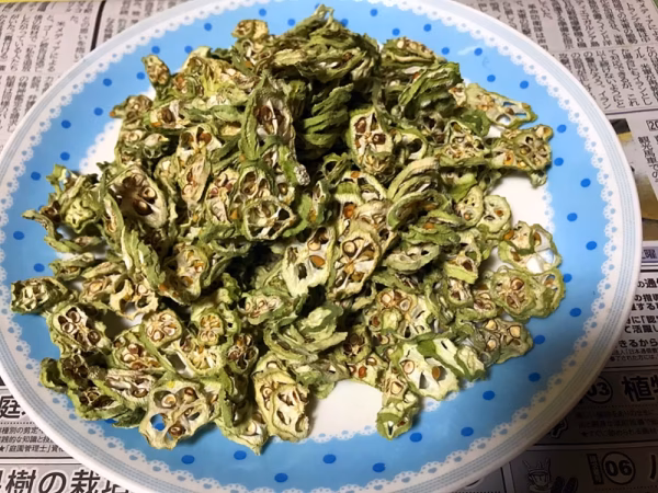 1.お茶パックに適度に乾燥白オクラを詰めます。