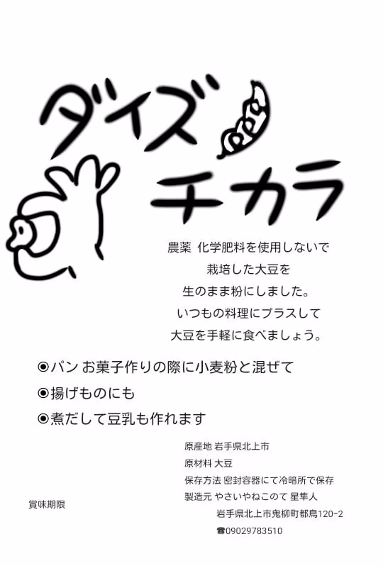 農薬 化学肥料を使用しないで栽培した大豆を生のまま粉にしました。
