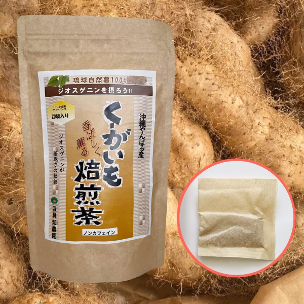 くーがいも焙煎茶をレターパックにて発送します✨くーがいも焙煎茶は、豊富なジオスゲニンを含むくーがいもをお茶として手軽に楽しむことができます。生のくーがいもは手に入りづらいですが、焙煎茶ならお買い求めやすく、無理なく続けられる点が魅