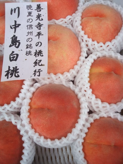 長野市川中島地区の篤農家が育成した品種で、川中島白桃・川中島白鳳・黄金桃の川中島3品種は、信州を代表するモモです。