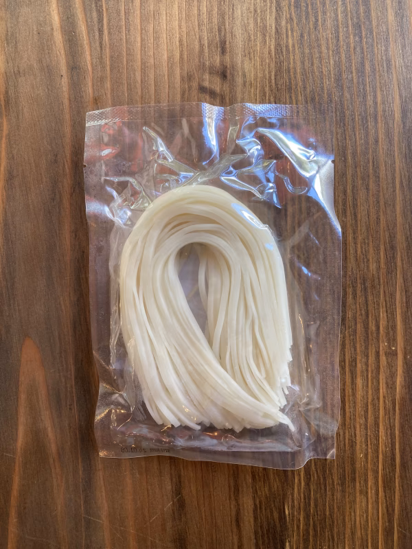 出来上がったものを送っていただき、到着したと同時に早速試食してみました。白米麺の加工をお願いするにあたり、白米麺とはどういうものなのか?知っておくために事前に加工業者様が販売しているものをサンプルとして取り寄せ、味、食感、風味などを吟味していたため基準はそこに置いていました。