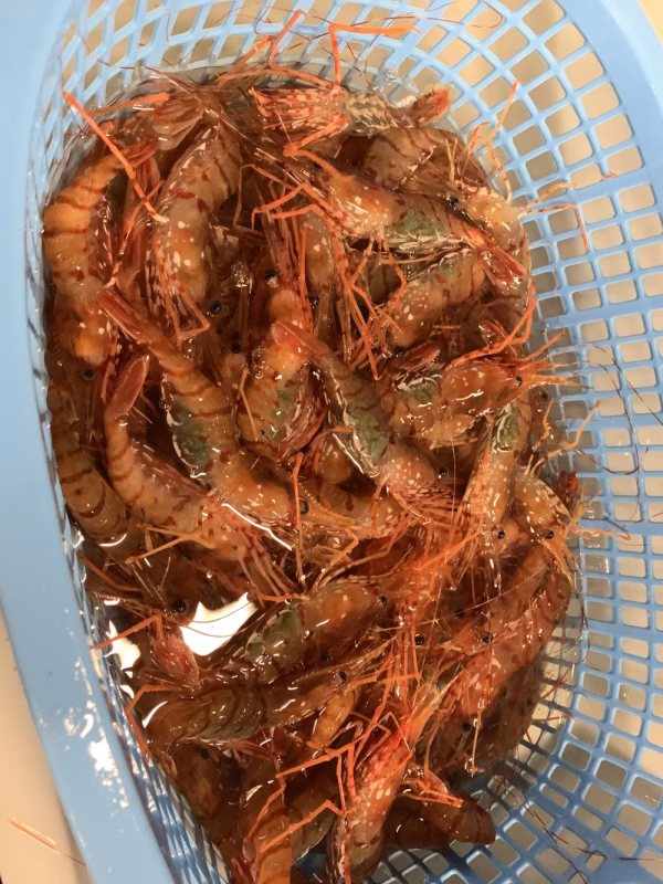 水揚げ後、ピチピチ跳ねた新鮮なボタンエビを発送。