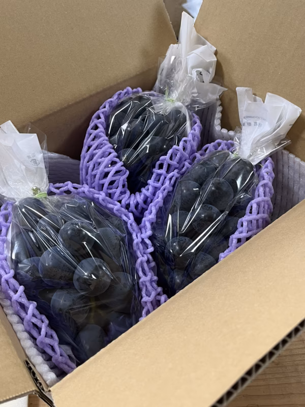 ぶどうの個体差により多少の誤差が生じる場合もございますのでご了承ください。調整で小さい房が入る場合もあります。