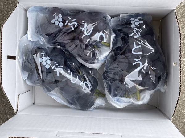 紫黒色で、粒は10~15gくらいと大きく、果肉はしまっていて汁がたっぷり。