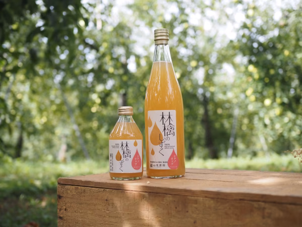 山幸農園オリジナル・特製りんごジュース「林檎のしずく」。「飲むりんご」をイメージする商品を作りたくて、品種ごと、おいしいところを贅沢に新鮮なうちに、ぎゅぎゅっと絞っています。