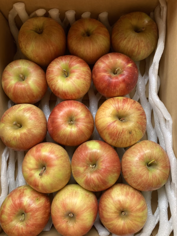 伝票来ましたらすぐ発送できます!!9月12日頃までの予定です😆 サンつがるの大きさ着色バラバラ、小玉やキズやサビのあるもの、変形したもの、ワンチュンされたもの、少し打痕があるものなどです。 でも食べたら美味いりんごです! サンつがるりんごの、家庭用訳あり品です‼️ 約3キロ満杯詰めで発送します。食べ切り量です。大体10-15個位入ります。 箱に上下にネットを敷いて満杯詰めで発送します。 上記説明に書いたようなりんご🍎ですが、そのまま食べられます。美味いです😄 気になる部分は除いたら、問題なく食べられます! 朝食やお風呂上がり、お子様のおやつ、弁当の一品、アップルパイやジャムなどに最適です! 残暑厳しい時期なんで、甘さと酸味がバランス良く、それが健康増進に繋がれば幸いです♪ 当園のりんごは、地域標準より農薬散布回数、使用濃度、散布量を減らして栽培しています!地域標準より約5-6割使用で栽培していますので、安心して召し上がって欲しいと思います! 散布回数は、 4月2回、5月3回、6月1回、7月1回、8月10日頃に1回予定しています。つがるは都合8回で、収穫始める予定です😆 普通の農家は、月3回は散布するので、つがるの収穫までに、12-14回はするのでりんご🍎栽培は大変なんです笑 今年は、春先の霜害で収穫量が少なくなったりサビがあるりんごもありますが、7月下旬から8月にかけて、ほとんど雨が降ってないので、病害虫も少なく、甘くて美味いりんご🍎になっていくと思います♪ ご注文お待ちしております。よろしくお願いします。