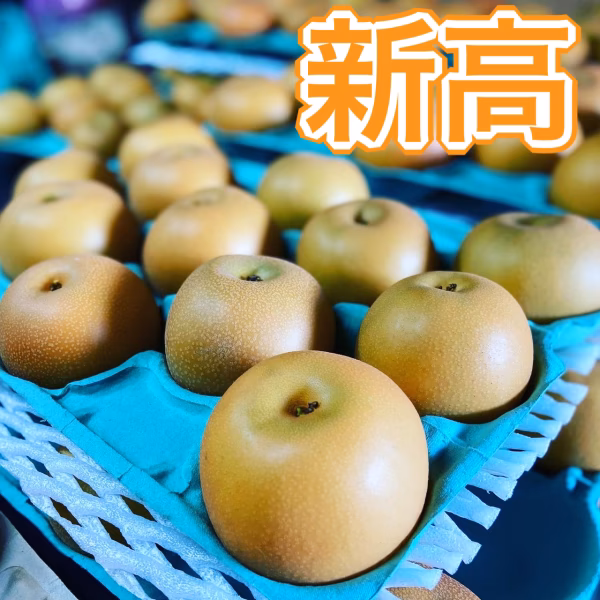 新高梨は、1玉、600g〜1kgほどあり、梨の中でも特大級の大きさの梨です。果肉は、やや粗めでシャキシャキとした歯ごたえがあり、酸味が少なく、甘い梨です。