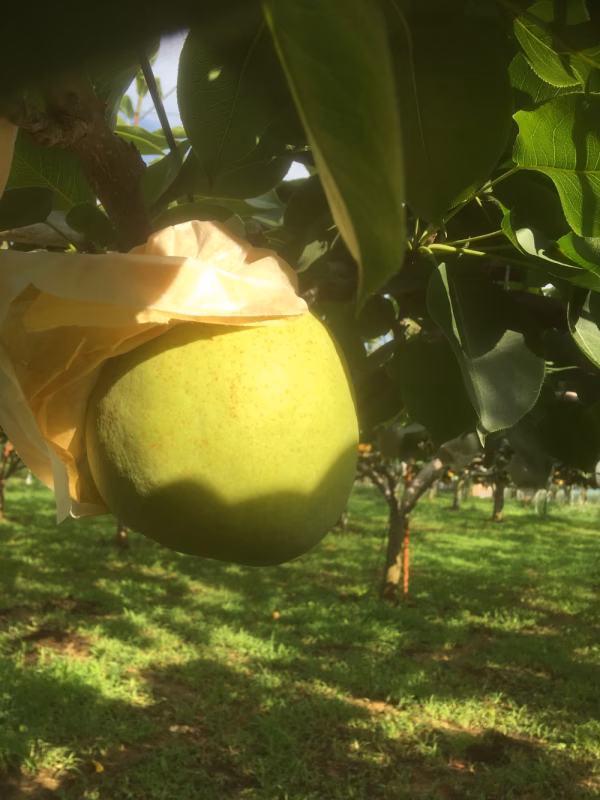 お届けは、9/10〜24頃となります。 幻の梨と言われる程、流通量が少ない品種の【かおり梨】。ご存知でしょうか? 緑色をした梨ですが、熟すと黄色味を帯びて芳醇でフルーティな香りがするのが特徴的です。 シャキッと甘くて、味は親である【幸水】に似ていますが、口に広がる香りと珍しい見た目から、ご贈答品としても人気です。 1玉が1kgを超えるまで巨大になることもある梨ですが、この度お届けするサイズは500〜700gの【かおり梨】になります。それでも5〜6Lサイズで食べ応えはバッチリ! 食べ頃を収穫していますが、果実の色合いを見ながら日を置くことでお好みの食感・香りも楽しめます。是非、食べ比べてお気に入りの状態を探してみてください♪ ①薄い黄緑は少しおいても大丈夫な日持ちする状態。シャキシャキ感ありますが、香りはまだ薄め。 ②黄色味がでているくらいが、甘さ・シャキシャキ感・甘い香りの良いベストな食べ頃。 ③真っ黄色は香り強くなり甘ーいですが、果肉は柔らかくなります。