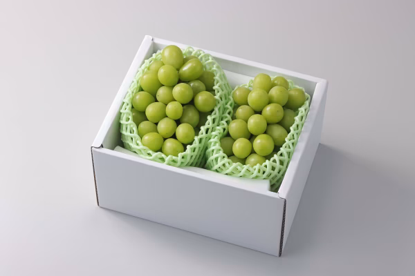 梱包に関しましては、商品写真と同じように化粧箱に緩衝材等を詰めて葡萄が揺れないようにしています。商品写真ではそのまま葡萄が箱に入っていますが、実際には葡萄一房一房、紙セロに入れて梱包をしています。