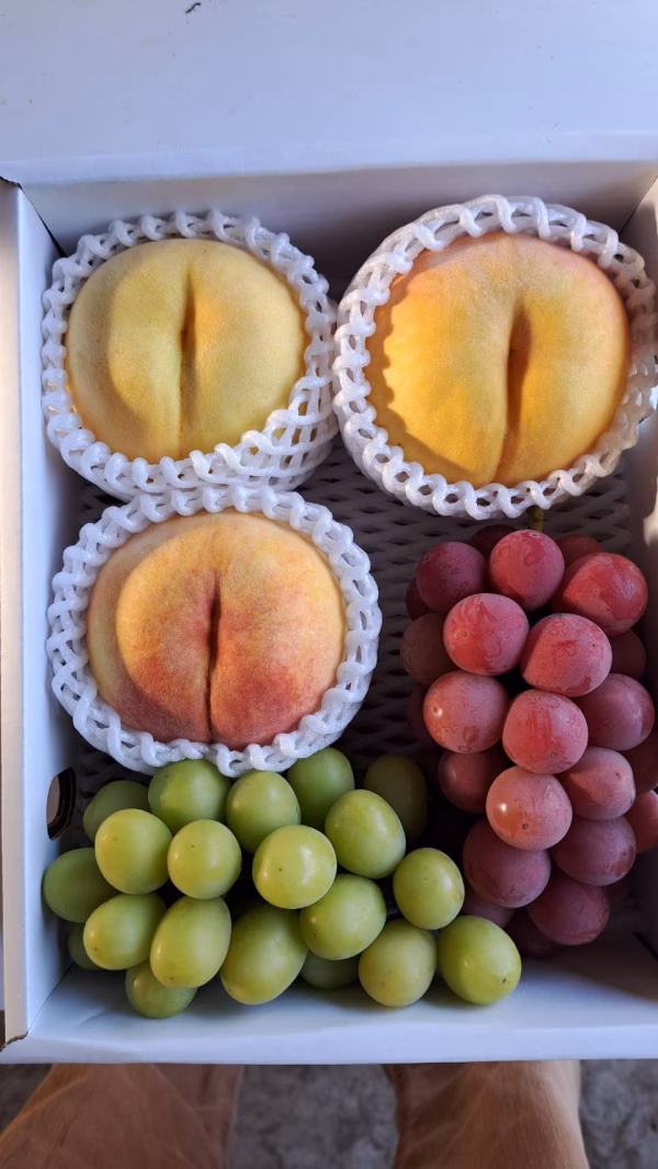 ▼9周年スペシャルセット 今回限りの限定価格 通常10000 翠笑宴★玉手箱 1箱で超豪華3種類楽しめる! どのぶどう・ももが入ってくるかは、届くまでお楽しみ♪ 桃と房のぶどうをお届け! ◆桃 【ピンク】まだら模様が特徴 CX      ピンクで硬い 幸茜 【黄桃】山梨県限定品種 甲斐黄桃     三大美桃 黄貴妃 ◆ぶどう  【黒系ぶどう】 オリエンタルスター 藤稔 【赤系ぶどう】 安芸クイーン ウィンク 【緑系ぶどう】 シャインマスカット ジュエルマスカット 雄宝 天山 天晴 発送時に旬のと桃とぶどうを混ぜてお届け! ▼状態・味について この時期ならではの、旬の新鮮果物達 他の桃とは比べ物にならない固い桃まだありますよ! ぶどうもまだ知らない珍品種が混ざるかも♪ ▼数量、分量の目安 2キロ箱:桃2~3個 ぶどう2~3房 ※表記上、〇キロ箱使用とありますが、箱に入るだけ詰めておりますので、正味500g前後の差異がございますので、ご理解ください。 また、天候、時期により、実の大きさや房数も変わります。 ▼生産方法、こだわり 化学肥料を全く使用せず、有機質のみの。 富士山西麓朝霧高原で育った乳牛から作られた牛糞堆肥、 山梨県内産稲藁、国内産米糠のみ肥料として 持続可能な土作りにこだわり、 除草剤は一切使わず、草生栽培にこだわっております。 栽培農薬は県の防除基準に基づき、減農薬で必要最低限と しています。 そして、真心こめて、一日一日果物と真摯に向き合って育ててきました。 愛情いっぱいの果物を是非、堪能してみて下さい。 ▼注文に際しての注意点(配送方法や納期指定など) 輸送時の衝撃等を減らすため、緩衝材を底にだけ入れますが、それでも箱の中で粒が割れてしまったり、傷んでしまう可能性があることをご理解下さい。 #ポケマル #9周年福袋 #翠笑宴 #桃 #シャインマスカット #ぶどう #限定