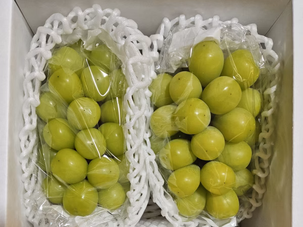 ・種なし、皮ごと食べられるシャインマスカットは甘くてジューシーでお子様にも大人気の美味しい葡萄です。マスカットの高貴な香りが満点です。