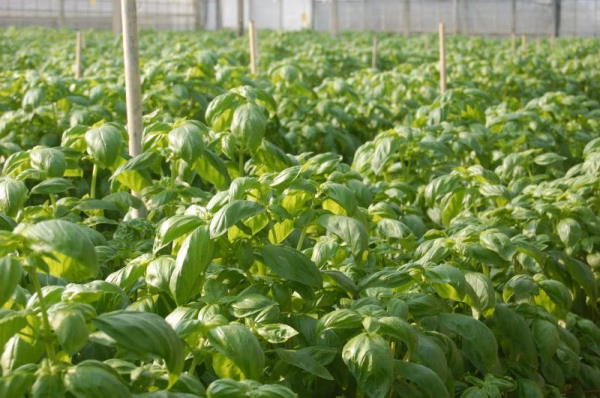 当社自慢の逸品が、手間隙をかけて栽培したスイートバジルです。 バジルは同じ株で約半年間、何度でも収穫できますが、香りが高いのはやはり若い木のときです。そこで、当社ではクリスマスやバレンタインデーなど、 バジルの需要が高まる時期に最初の収穫のピークがくるよう定植時期を調整。常に最もよい状態で商品をご提供できるように、生産管理を徹底しています。 また、栽培時には天然のニームオイルや手作業で虫を防ぎ、できるだけ農薬を使わないようにもしています。