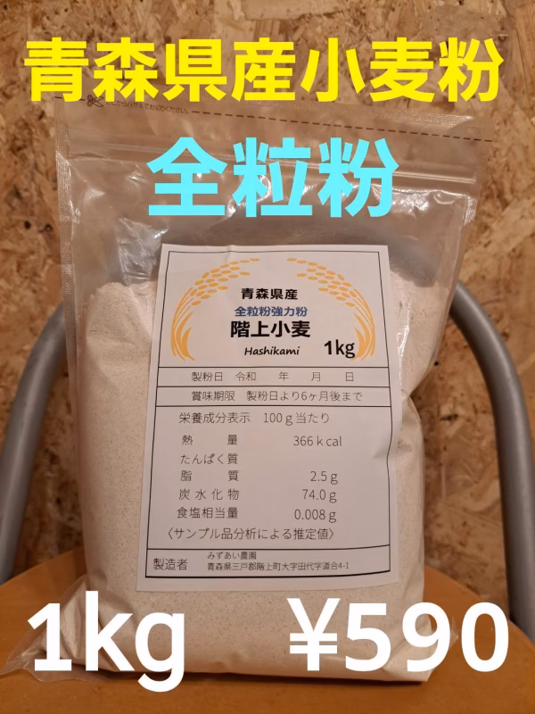 青森県階上産「ゆきちから」100%の小麦粉です。小麦の粒をまるごと挽いたのが全粒粉です。表皮まで砕いているので茶褐色で表皮と胚芽からくる香ばしい風味と歯ごたえある食感がポイントです。素材本来の味を味わうような素朴なお菓子やパンにいかがでしょうか。もちろんうどんやラーメンなどの麺にもお使いください。