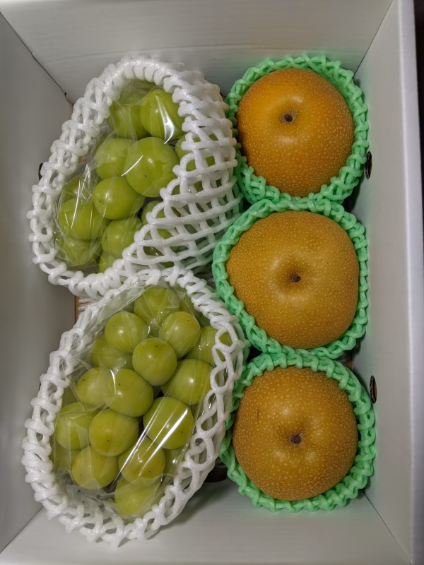 豊水3個とシャインマスカット2房の詰め合わせです。