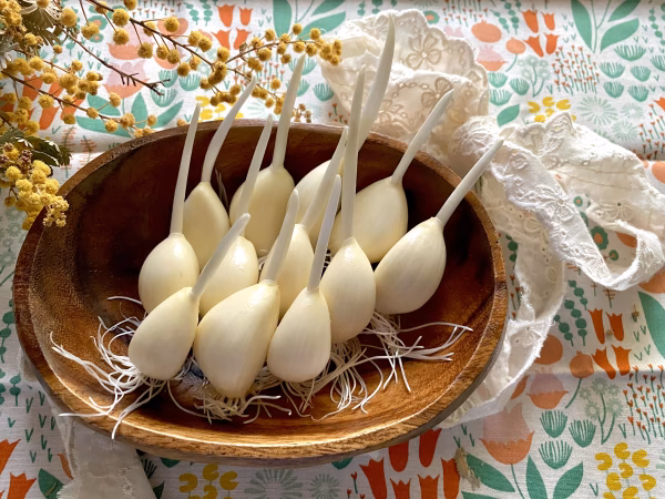 また、発芽にんにくの場合、にんにくの根っこの部分はもちろん、葉の部分も食べられます。根から葉まで丸ごと食べてもよし、葉と身の部分を分けて、別々に利用しても美味しい、バラエティに富んだ調理が可能です。