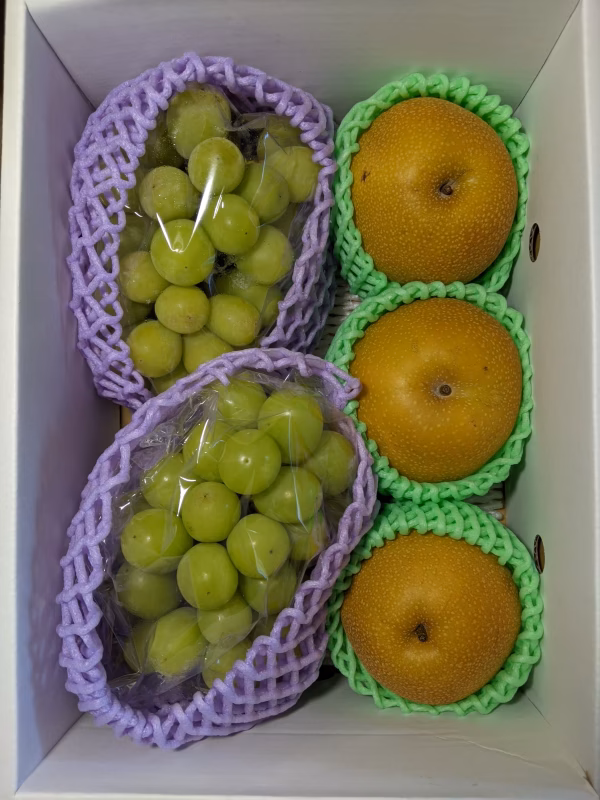 豊水3個とシャインマスカット2房の詰め合わせです。
