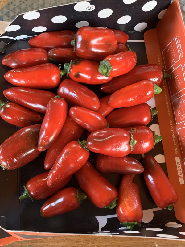 ▼商品概要 熊本県八代産農薬不使用ハラペーニョ 500グラム 畑の整理のためにお安く販売します。 時期的にサイズや色などバラバラです。 ▼品種・味の特徴 ハラペーニョ ってどう使うの?辛くないの?と良く聞かれますが、辛さはハバネロの約100分の1程度だそうです。程よい辛さに美味みがあります。 青いハラペーニョより甘みがでて辛さも柔らかくなっております。 使い方はフライにしたり、ピクルスやサルサソースにしてタコスやハンバーガー、ピザ、パスタ、ホットドッグ、サラダにトッピングすると美味しいですよ。作り方も簡単です。 気になる方は気軽にコメントください、特に飲食店の方々よろしくお願いします。 ▼数量、分量の目安 一般家庭なら500グラムで充分だと思いますd( ''Д'' d) 300〜400グラムでも大丈夫です。 ▼栽培/生産方法、こだわり 農薬不使用、有機肥料で育てています。 ▼注文に際しての注意点(配送方法や納期指定など) 形を保ちたいので宅急便コンパクトで送っています。 なるべく早く受け取れるようにしていただければ幸いです。 #無農薬#オーガニック#野菜#熊本#八代#ハラペーニョ #ピクルス#サルサソース#タコス#ハンバーガー#ピザ#パスタ#ホットドッグ#飲食店とつながりたい#ハラペーニョ#サラダ #ハラペーニョソース#タバスコ