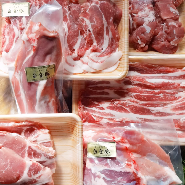 白金豚のお肉一頭分から、各部位を少しづつ集めて、まるごと味わえるセットにしました。ぜひ食べ比べて、その違いをお楽しみくださいね。