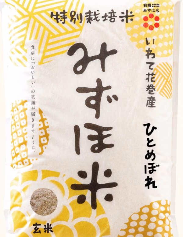 有機みずほ米:農事組合法人みずほが無化学肥料・無農薬で栽培した特別栽培米のブランド名です。弊社で栽培した”有機栽培ひとめぼれ”の中から基準に達した選りすぐりの”みずほ米”をお届けします。栄養たっぷりの玄米をお楽しみ下さい。和紙調包装で贈答品にも対応しております。