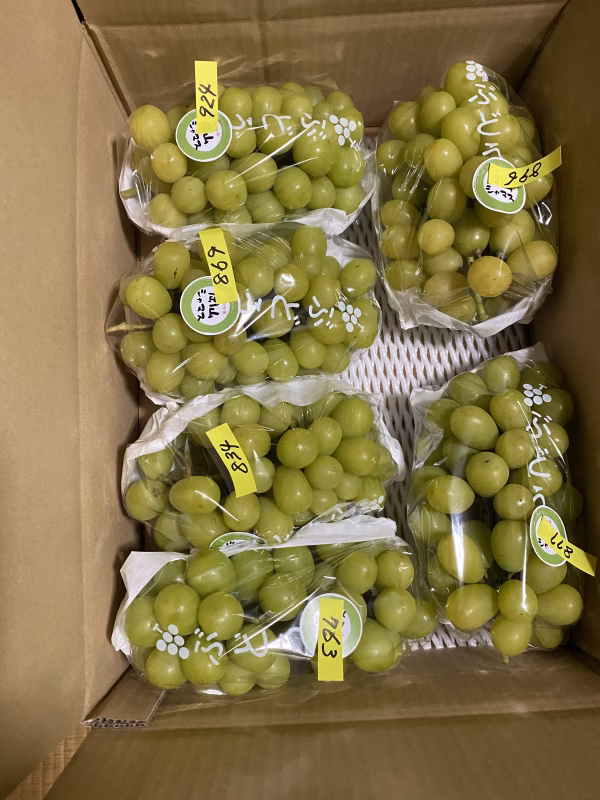 ▼雨除けのビニールハウスで栽培をしています。ジベレリンなどで種なしの処理を行っていますが、たまに種が残っている場合もございます。