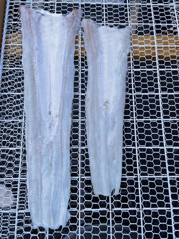 志摩の海で取れたウツボです。 網に掛かってしまい弱ってしまった小さめのウツボや筒漁で入りすぎて弱ってしまった小さめのウツボを食べたことのない人に気軽に試してもらえる価格設定を致しました。 この商品は写真の干しているウツボの中の一番小さいものがこの商品になります。 ウツボの上側は骨が少なく、下側は骨が多く細く刻み唐揚げがオススメです! 塩分濃度8〜10%の海水で10分漬け込み後真水で洗いその後乾燥させています。 海の状況、天候等に左右されますので長期間でもお待ちいただける方のみご注文ください。 一夜干しですので、乾きが少ないと思う方はさらに乾燥させてください。 ウツボが噛み合いをして身に傷がある場合もありますのでご了承ください。